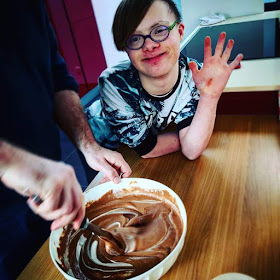 M mocht deze keer zelf kiezen wat hij ging koken. Hij koos voor chocolademousse. Niet het gemakkelijkste dessert. Hij deed dan ook vol overgave wat hij kon en kreeg hulp van B. Zo kon hij een lekker dessertje op tafel toveren. Mmmm!