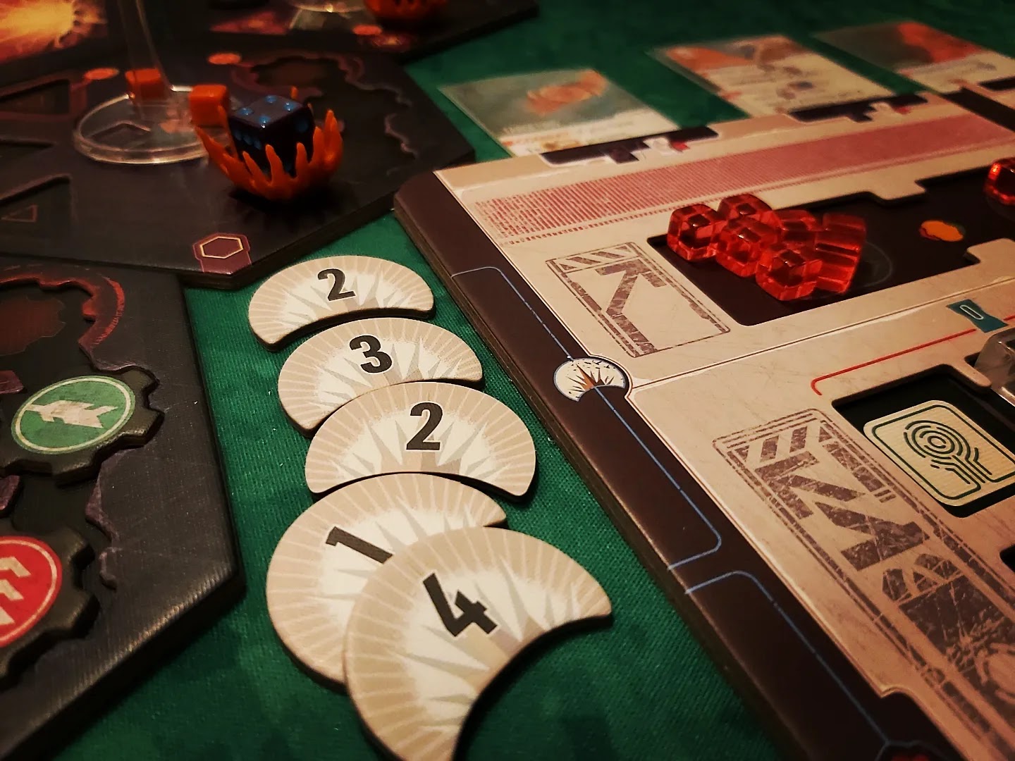 Daarna betaal je nog voedsel ea voor een bepaald symbool op scoringskaarten of productievelden. En krijg je punten van je privé-scoringskaarten zolang er geen corruptietoken op de kaart staat.